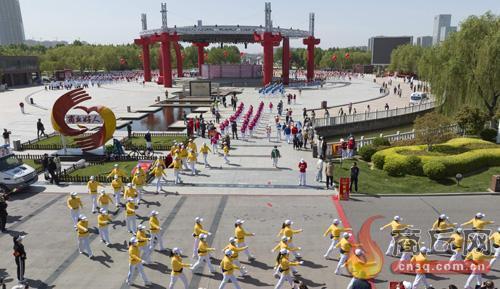 4月29日,商丘市2023年“行走大运河”全民健身健步走比赛暨全民健身月启动仪式在日月湖景区“商丘好人”主题公园举行,来自省内外46支代表队近3000人参加集体健步走环节。副市长王爱林宣布活动启动。