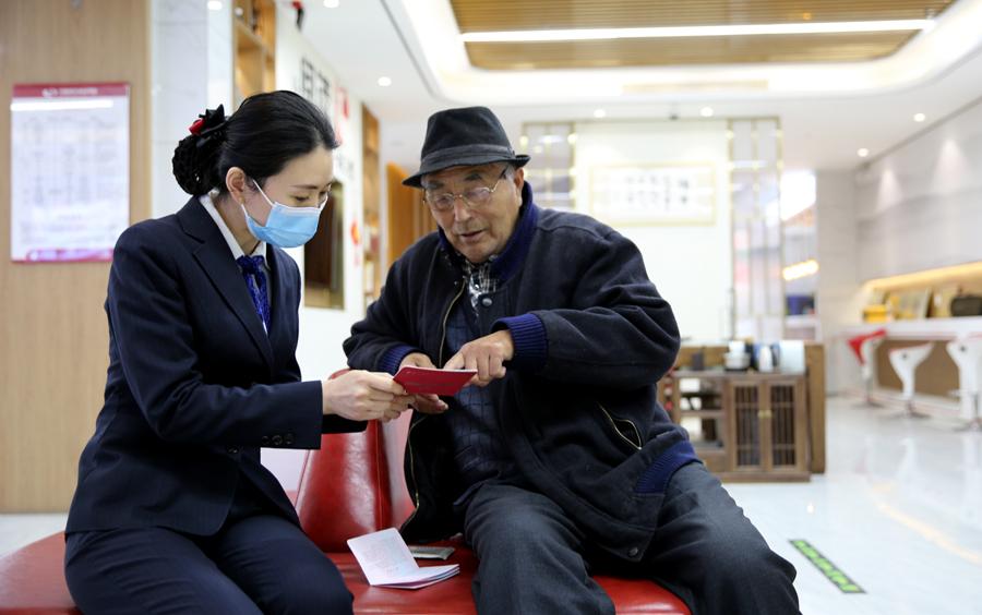 “大爷,这是您的粮食补贴钱,我帮您再清点一下,请把补贴卡放好”“大娘,请不要着急,您先坐这休息一下,我去帮您取个号”“大姐,我们这提供的有婴儿小推车,您稍等片刻,我帮您推过来”……