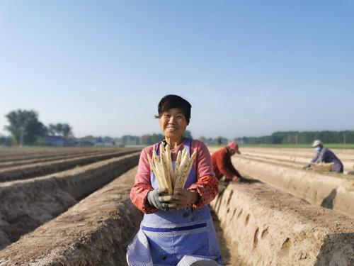春盘食指动,笋茁入市卖。5月9日天刚亮,国家地理标志农产品“娄店芦笋”的核心产地睢阳区娄店乡刘各村就热闹了起来,村民三五成群,走进芦笋种植基地笔直的垄沟里开始了采笋(如右图)。“俺家这3亩芦笋是乡政府免费提供的示范品种,长得又白又亮,产量高、口感甜,收购商都抢着要。”刘各村笋农刘付山说。