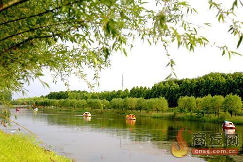 游人乘坐游船在宁陵县大沙河游玩