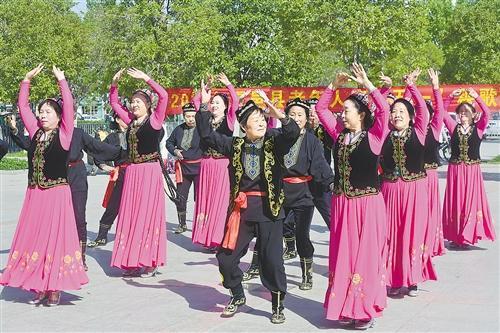 5月9日,夏邑县老年体协在长寿文化广场举行新疆舞展演。近年来,该县在老年体协引导下,兴起了新疆舞热。新疆舞的原创民族是维吾尔族,舞姿活泼优美,步伐轻快灵巧,身体各部分的运用较为细致和丰富,有着浓郁的西域风格,很受群众喜爱。