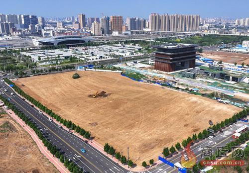 5月15日上午,工人正在商丘高铁站北广场北侧施工。记者在现场了解到,“绿轴”东侧广场将升级改造成绿地公园,建设完成后,商丘高铁站北广场周边将更加美观。