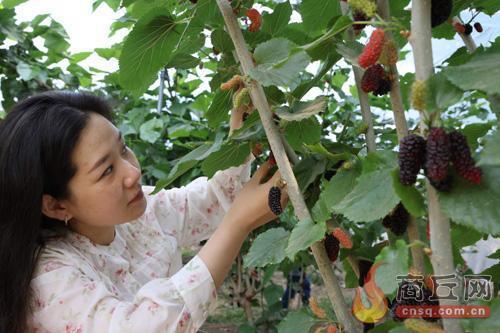5月14日,梁园区水池铺镇快乐农场内种植的桑葚已经大面积成熟进入采摘期。一串串紫色、红色的桑葚果挂满枝头,村民正忙着采收桑葚,园内还吸引了不少游人前来体验采摘乐趣。 本报融媒体记者 邢栋 摄
