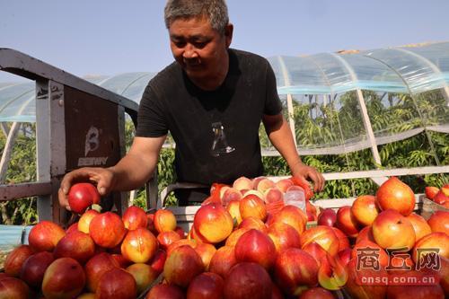 5月14日,城乡一体化示范区民安街道办事处侯楼集村果农正在采摘油桃。这里大棚油桃进入采摘期,该村利用线上线下相结合的方式,帮助果农销售油桃,确保农民增收,助力乡村振兴。 本报融媒体记者 邢栋 摄