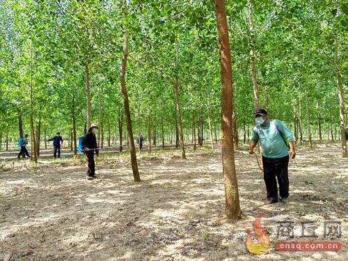 梁园区园林绿化局组织专业防治队,对黄河故道防护林带的杨树进行施药。 通讯员 韩际东 吉金涛 摄