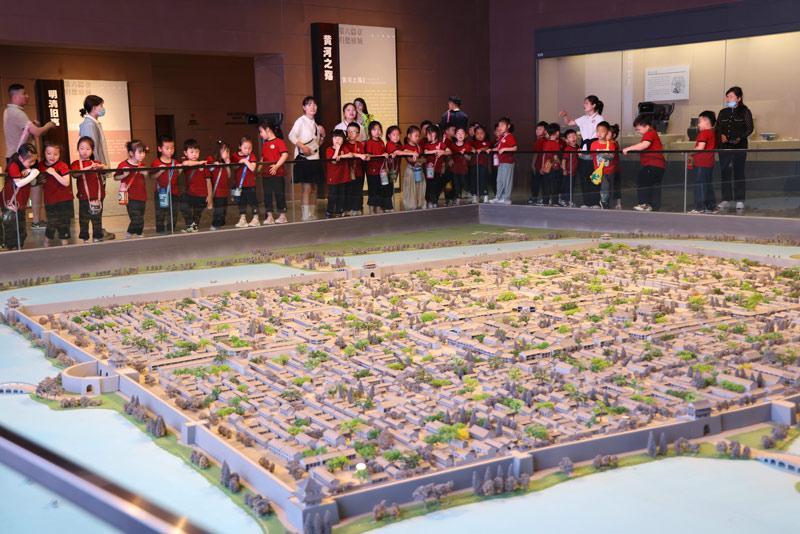 当天上午,商丘西城幼儿园园长刘亚楠和5名老师一起带着40多名孩子来到商丘博物馆参观。“小朋友们,我们现在参观的是商丘博物馆的古代文明展厅,这里展出的甲骨文、青铜器和玉器等文物,都是中国文化和历史的重要见证。”小朋友们跟着讲解员参观了商丘博物馆的古代文明展厅、应天书院展厅和商丘市非物质文化遗产展示馆。