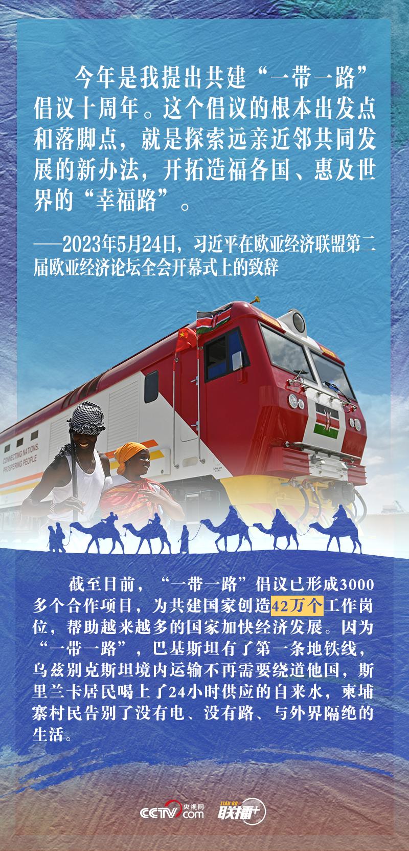 联播+“今年是我提出共建‘一带一路’倡议十周年。这个倡议的根本出发点和落脚点,就是探索远亲近邻共同发展的新办法,开拓造福各国、惠及世界的‘幸福路’。”5月24日,习近平主席在出席欧亚经济联盟第二届欧亚经济论坛全会开幕式并致辞时指出。