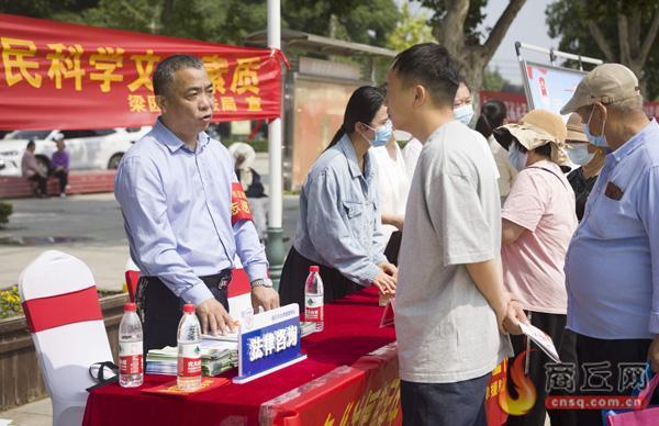 5月31日,梁园区司法局工作人员为群众讲解法律知识。当日,以“热爱科学 崇尚科学”为主题的2023年全市科技活动周暨文化、科技、卫生“三下乡”活动启动仪式在梁园区廉政文化广场举行。活动旨在通过组织群众性科技活动,推动全社会形成讲科学、爱科学、学科学、用科学的良好氛围,为加快创新驱动发展、建设科技强市提供坚强科技支撑。副市长王爱林出席启动仪式。记者 崔 坤 摄