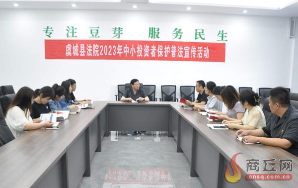 6月8日,虞城县人民法院干警到金豆子农业股份有限公司,开展优化营商环境中小投资者保护普法宣传活动,向公司员工发放《优化法治化营商环境法律风险防范100条》等营商环境宣传资料。 通讯员 张朋 摄