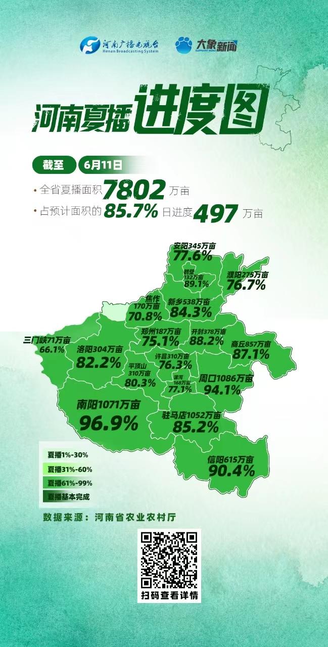 眼下全省夏收基本结束,夏播进入关键冲刺期。6月11日,记者从省农业农村厅获悉,省委农办印发了《河南省秋粮增产夺丰收行动方案》,突出抓好十项重点工作,推动秋粮大面积均衡增产,确保全年粮食产量在1300亿斤以上。