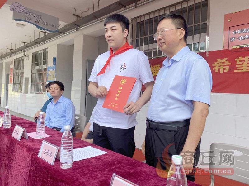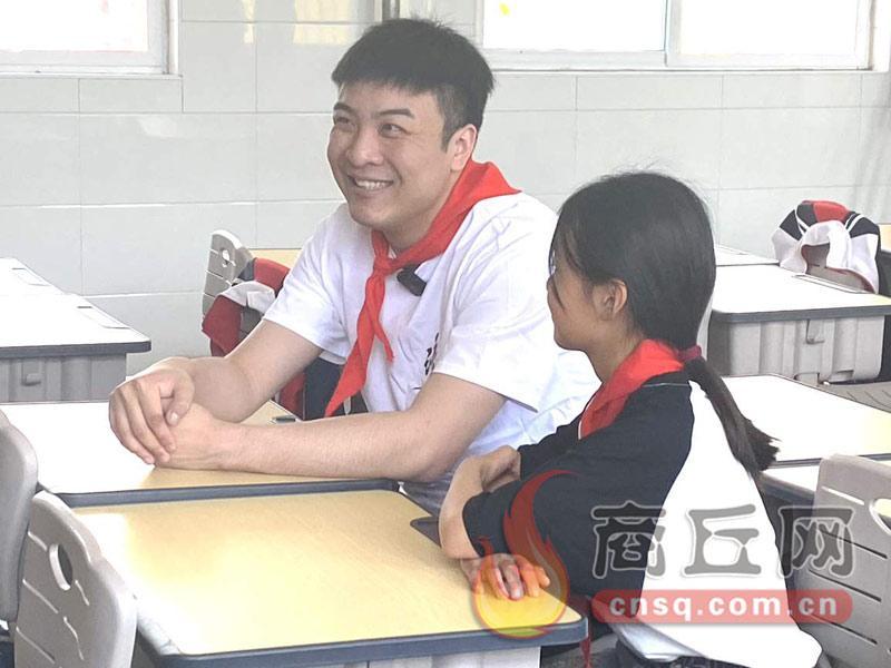 6月5日,商丘市梁园区观堂镇南庄小学热闹非凡,孩子们佩戴红领巾,手捧鲜花,准备迎接远方的客人——来自广州的“沙子哥”。