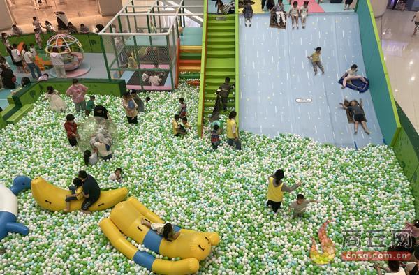 孩子们在市区一家商场内的游乐园玩耍