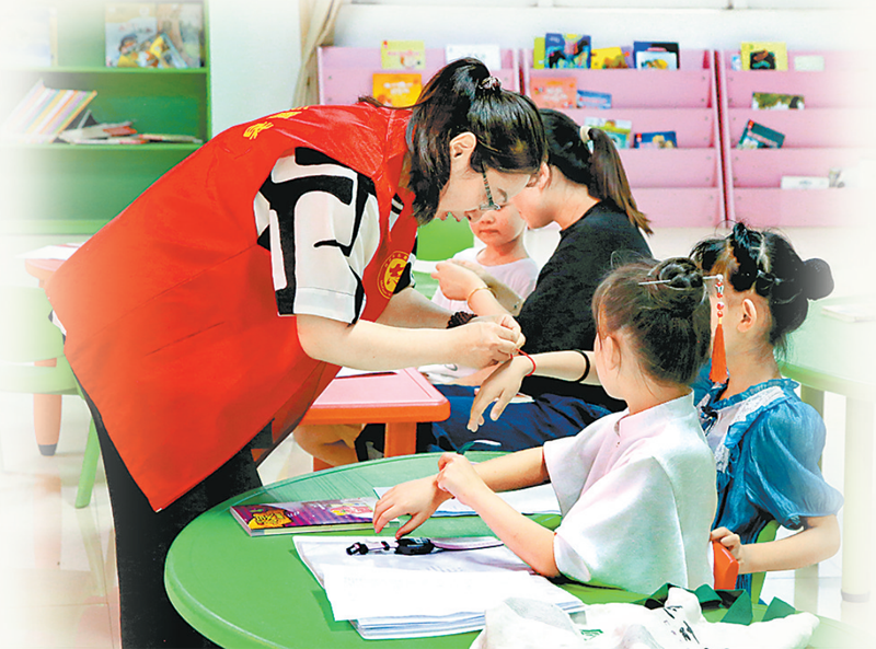 6月19日,在民权县图书馆二楼少儿阅览室,一场寓教于乐的端午节亲子阅读活动正在火热进行中。孩子们编香囊、五彩绳,志愿者为孩子们讲述端午节的由来和屈原的故事等,带领孩子阅读端午节相关诗词,使孩子们了解了端午节悬挂艾草、佩香囊、赛龙舟、吃粽子等民风习俗,家长与孩子们过了一个与众不同的端午节。宁津瑜 摄