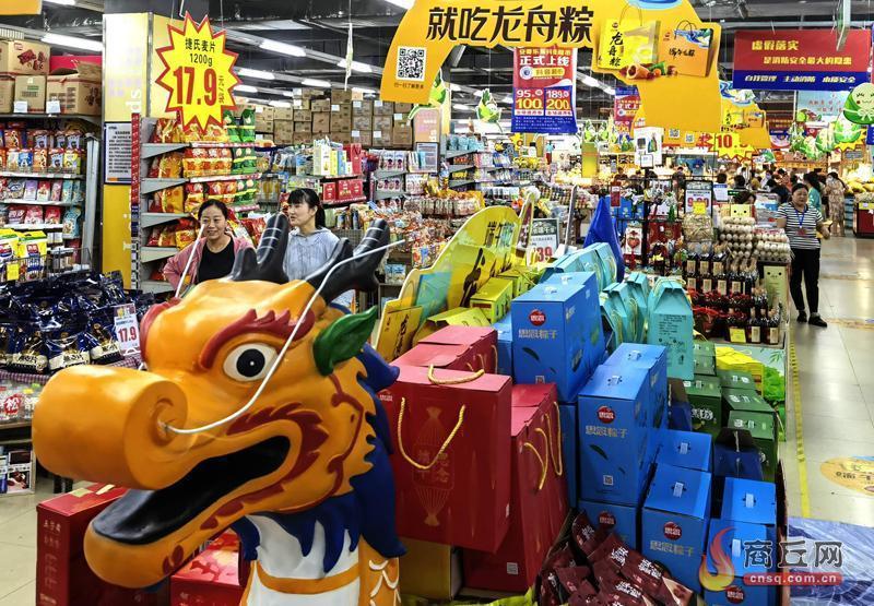 6月20日上午,记者在商丘多家超市和农贸市场看到,成品粽子均被摆放在显眼位置,供广大市民选购。蜜枣粽、豆沙粽、鲜肉粽,各种口味的粽子应有尽有。粽子产品不断推陈出新,在口味和包装上越来越“卷”。本报融媒体记者 魏文慧 摄
