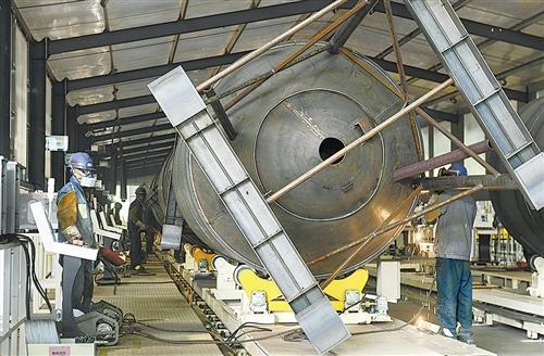 6月27日,工人在生产车间进行焊接作业。总投资6.6亿元的虞城县啤匠科技有限公司是国内首家集精酿啤酒酿造设备生产、原料配送、运营管理于一体的全产业链企业。本报融媒体记者 崔坤 摄