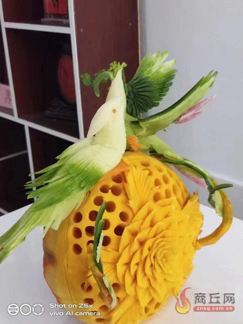 “武氏传统果蔬雕刻技艺”入选虞城县非物质文化遗产,武君也是第四代非遗传承人。