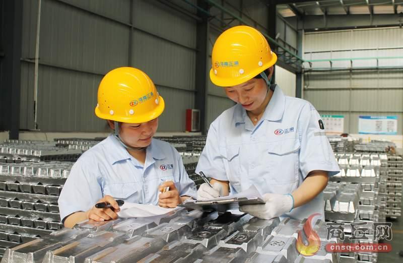 6月27日,走进位于永城市高庄镇的河南正源新材料科技有限公司生产车间,夏季炎热高温的天气丝毫没有影响到生产线上的工人们,他们分秒必争,汗水湿透了工服,红彤彤的炉火映红了他们的脸庞,码锭机器人有力的金属手臂在不停地抓取、放下,整个车间里一派繁忙工作景象(如左图 袁国豪 摄)。