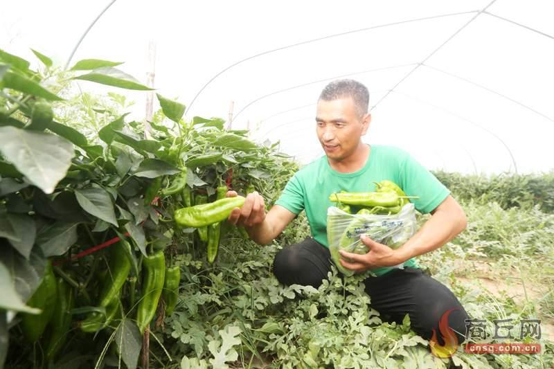 图② 6月25日,民权县绿洲街道办事处史村铺村村民白玉强在采摘辣椒。据悉,白玉强紧抓毗邻县城的优势,发展大棚西瓜、辣椒套种模式,每座半亩大棚纯收益2万多元。