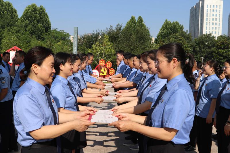 近日,民权县人民检察院开展升国旗、重温入党誓词、讲授专题党课、送上一张“政治生日贺卡”等庆“七一”系列活动。在活动上,该院相关领导向“七一”前后加入中国共产党的党员干警送去党的祝福,并为“过生日”的党员们赠送“政治生日”贺卡。