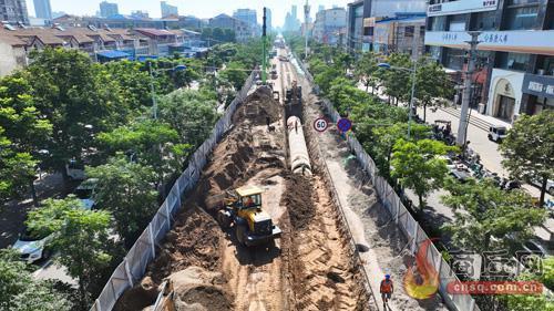 神火大道东侧的香君路积水点改造工地现场。潘奇兵 摄