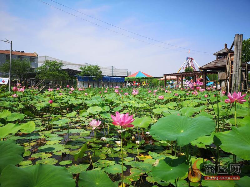 7月10日,虞城县城郊乡郭土楼村荷花盛开。据了解,该村以乡村旅游产业为突破口,建设了康养中心、百果园、百鸟园等项目,让村民们在家门口吃上了“生态饭”。