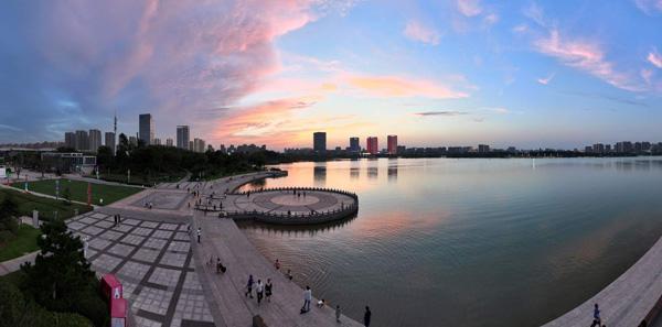 日月湖畔晚霞美