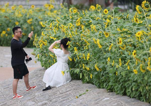 “秀毓中央正色深,花开朵朵尽黄金。”汉梁文化公园的葵花随着盛夏的微风摇曳,淡淡的芬芳传入鼻息。赏心悦目的风光让此地成为居民们茶余饭后的休闲场所。早上或傍晚的清凉时分,公园里的人三五成群,尽情享受盛夏的美好时光。