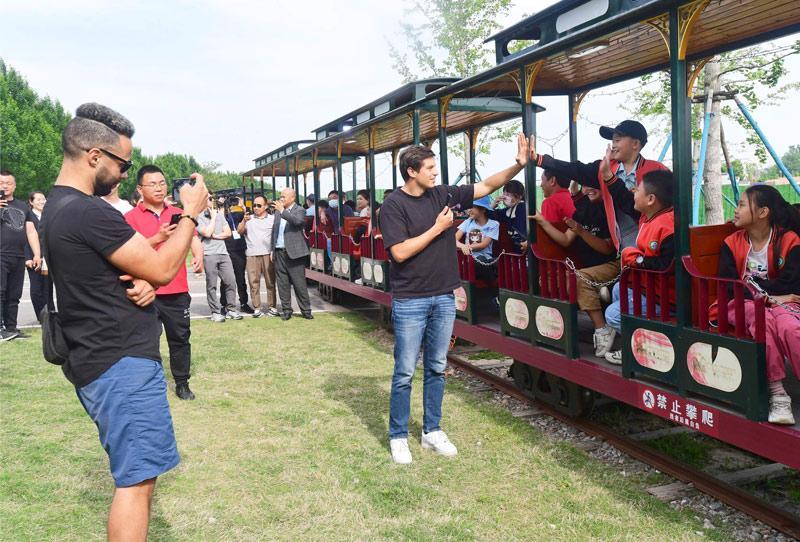 外国朋友在夏邑县太平镇龙港湾感受中国热情。