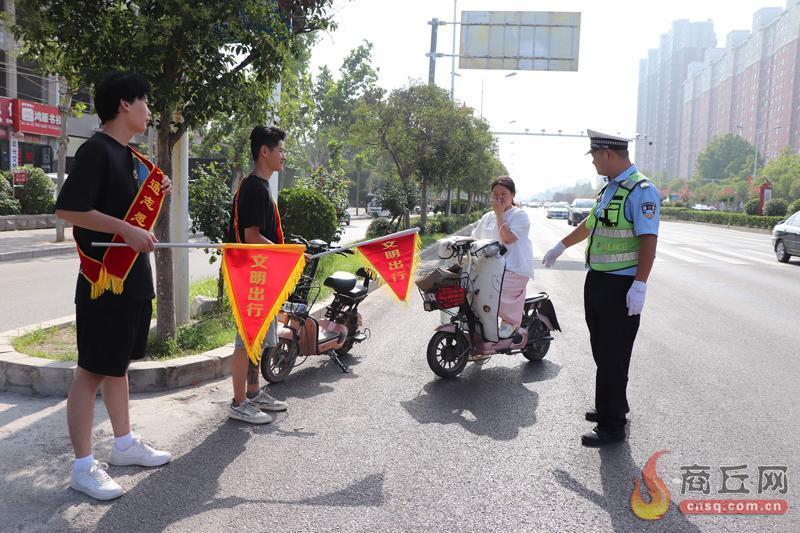 7月18日,虞城县公安局交警大队联合该县青年志愿者协会开展“一盔一带”公益宣传活动,共创共享安全畅通、文明和谐的道路交通环境。记者 王 冰 通讯员 汪葆夫 摄