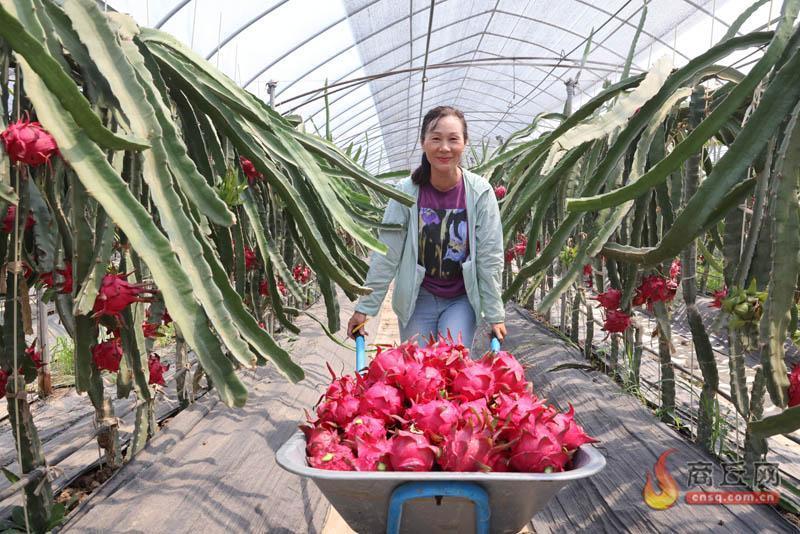 7月24日,虞城县芒种桥乡台湾红水晶火龙果采摘园内,种植户正采摘火龙果。近年来,该乡鼓励村民发展特色农业、种植特色水果,助力乡村振兴。