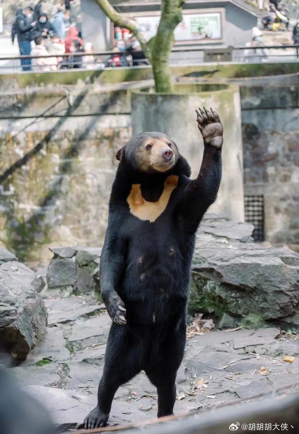 今年2月有网友拍到马来熊站立起来与游客互动。图源:@胡胡胡大侠丶