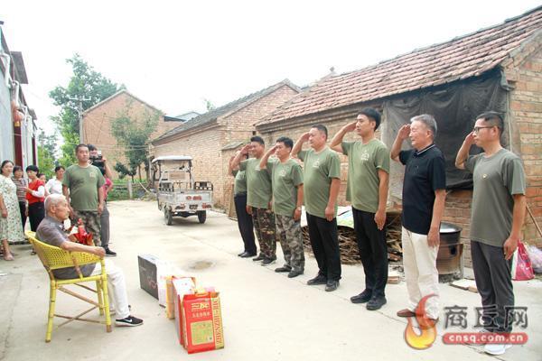 近日,夏邑县退役军人公益联盟的爱心人士,带着米面油等生活用品开展慰问退役老兵活动,为退役老兵送去慰问品和节日的祝福。爱心人士每到一处,与退役老兵促膝交谈,详细了解了退役老兵的身体、生活状况,仔细聆听退役老兵讲述战斗故事,与退役老兵一起共忆峥嵘岁月。记者 张壮伟 摄