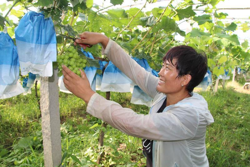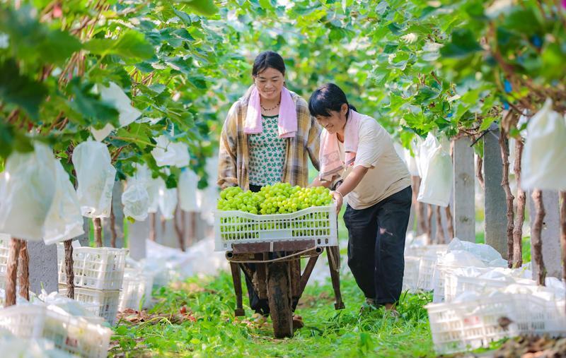 图② 近日,民权县王庄寨镇王北村村民在采摘“阳光玫瑰”葡萄。近年来,王庄寨镇财政所加大扶持特色农业产业力度,助力特色产业发展,实现农业增效、农民增收。 张玉玲 摄