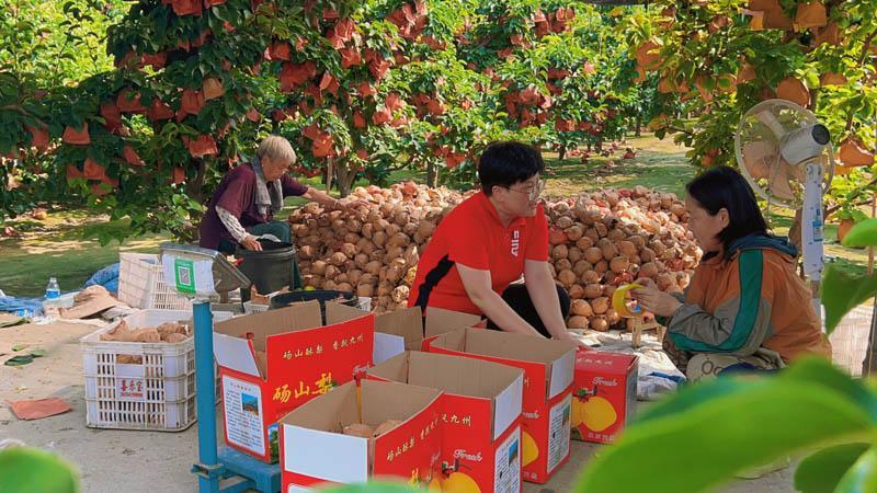 图① 8月5日,在夏邑县太平镇三姓庄村香云梨园,果农们穿梭其中,忙着采摘“皇冠”酥梨并筛选、装运,销往全国各地。