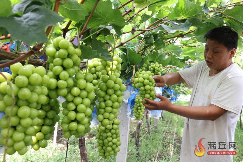 8月8日,睢阳区宋集镇赵小庄村一个家庭农场内,一串串青绿色的葡萄挂满藤蔓。农场采摘、包装、运输三点连成作业流水线,摘下的新鲜葡萄直接装车发货,运往城市销售。