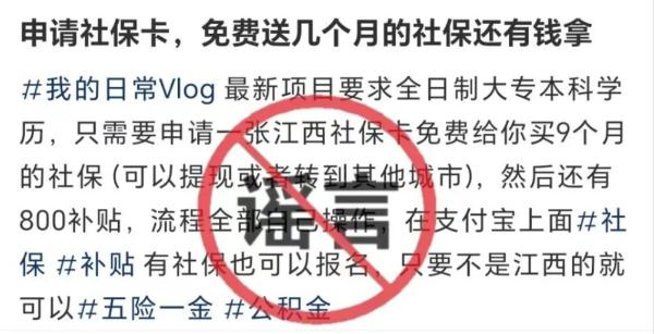 近期,小红书APP上传播的申请江西社保卡可免费买社保及领取人才补贴,此信息为谣言,请广大网友做到不信谣、不传谣。