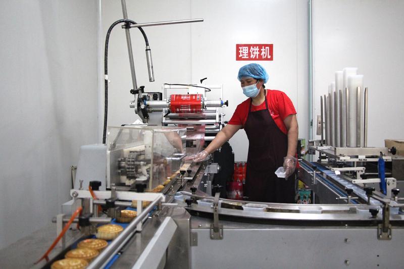 居住在崇法寺街道北关村工人申毛妮一家人,多年来负责月饼包装工序。“在这里,不用出远门,一个月能拿3000多块钱,还方便照顾父母和孩子,比外出打工踏实多了。”离家近,也不耽误照顾老人孩子,申毛妮对现在的工作感到很满意。
