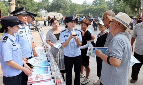 8月11日,市公安局睢阳分局新城派出所组织民警到辖区金世纪广场开展禁毒宣传活动。他们通过仿真毒品展示、发放宣传资料等方式,向群众讲解毒品的种类、危害,提醒群众提高防毒拒毒意识。 何 鑫 王一博 摄