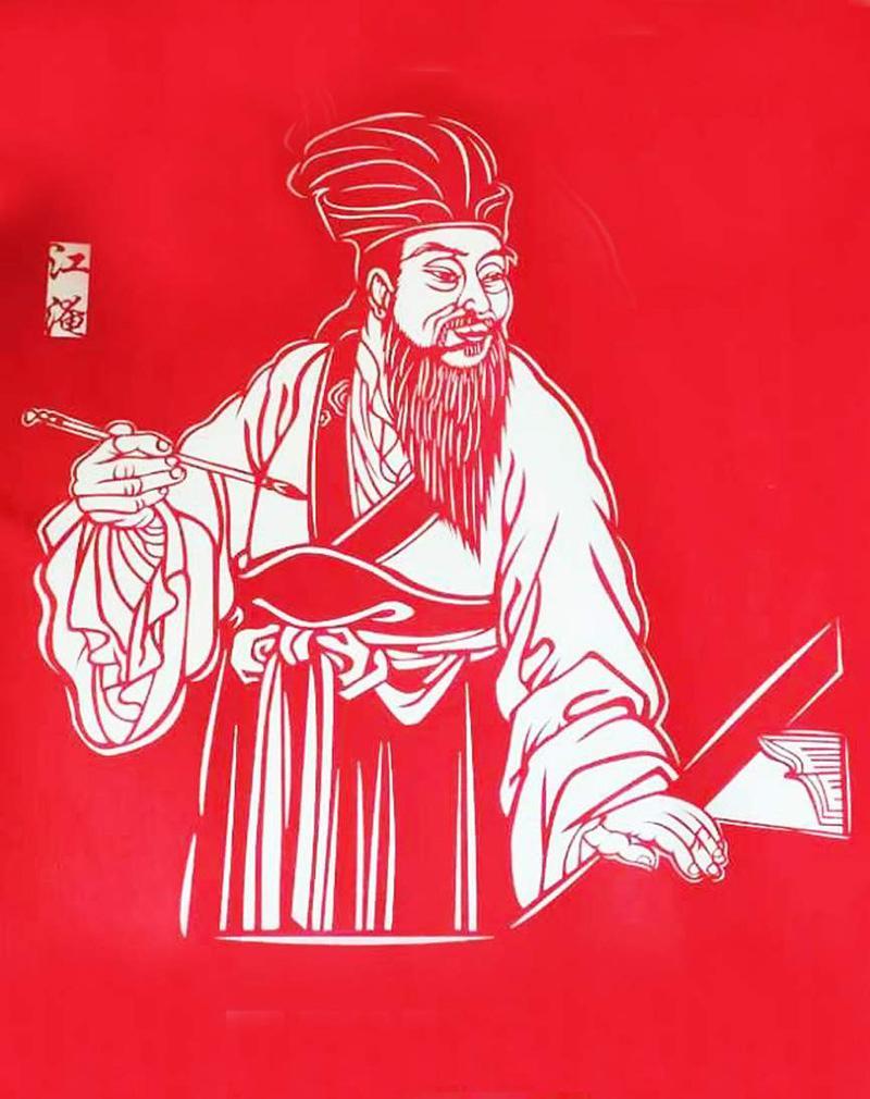 提到李红玉的代表作,不得不提30米长卷系列作品。其中融入了很多商丘的古代名人,不仅有文字介绍,更有肖像。长卷以红色为底色,有汤斌、吕坤、花木兰、王亥、仓颉、庄周、江淹等人物,整体看上去气势如虹,人物栩栩如生。