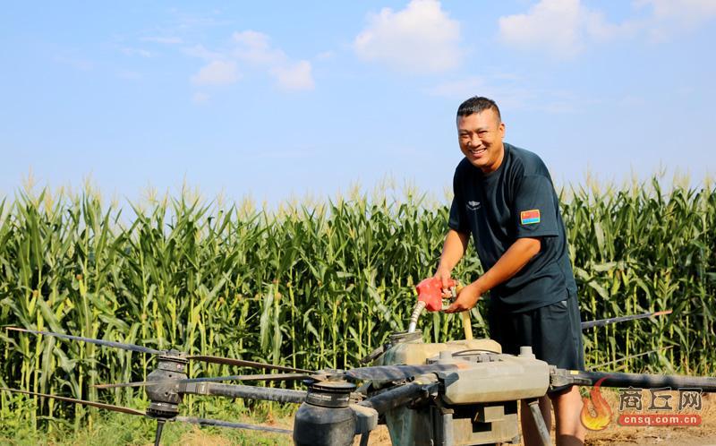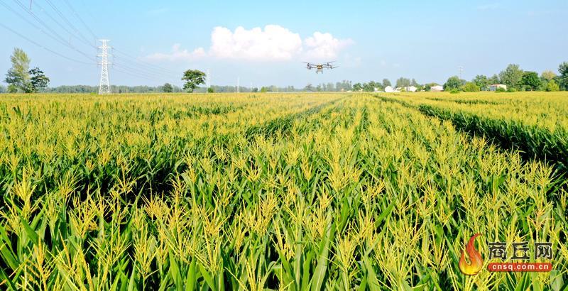 8月16日,宁陵县信合农民种植合作社员工正在操作植保无人机,在程楼乡密植玉米田内开展飞防作业。当前,正值秋粮作物防治病虫害的关键时期,宁陵县农业部门指导农民利用晴好天气抓紧时间作业,为秋粮丰产丰收奠定坚实基础。