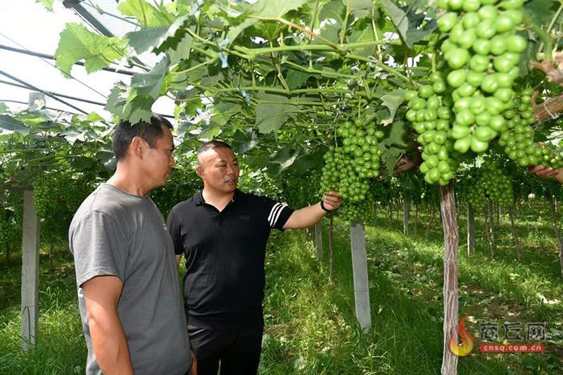 8月16日,夏邑县农广校副校长、高级农艺师王子朋(右)深入北岭镇寨里村葡萄园指导农户对葡萄开展管护。据了解,夏邑县农广校以助力特色产业高质量发展的工作思路,持续加大科学技术在农业生产上的推广应用力度,进一步提高实践教学和理论培训质量。