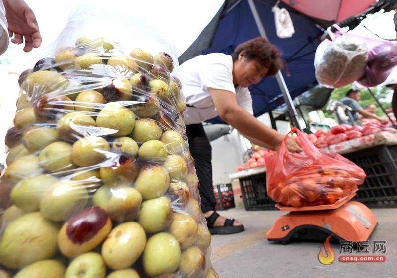 8月17日早晨,在文化路旁的一家农贸市场,市民正在购买鲜枣,每公斤6元左右。枣富含丰富的维生素、微量元素、膳食纤维等,糖尿病患者在血糖控制良好的情况下,可以少量食用冬枣,但若处于血糖不稳定或波动较大时,则不能食用。