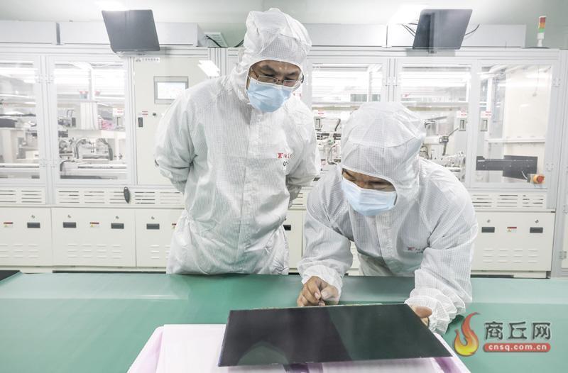 8月17日,工作人员身着防尘服在检查液晶面板。睢县雄富光电产业园由深圳市亚翔光电科技有限公司投资50亿元兴建,该公司主要致力于新能源充电桩设施设备、光电液晶横组、电子通信专用设备制造等。