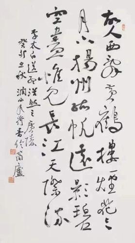 笔随时代,贵在出新。2006年,贾长城负笈京华,深造于中国书法院,拜师交友,博观约取,从社会流行元素中汲取营养,滋润心灵。海纳百川,彰显厚德载物的格局;宏阔的文化视野,昭示其自强的进取精神。从而,他形成了入古出新的创作理念。他先以颜真卿、何绍基行草书为根基,辅以篆隶之法,再将多种书法元素融为一炉,别出心裁,其行草书颇有翩若惊鸿、宛如游龙之状,行中有草,草中有篆隶,而篆隶中又有行草的意趣,于开放中蕴含着精微,于豪迈里透露出飘逸。有论者赞其作品开合有度,轻重得宜,疏密有致,节奏明快,富有阳刚之美。