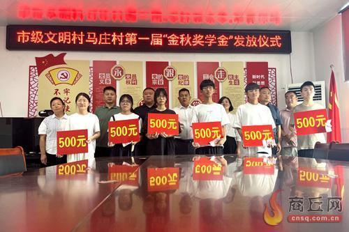 8月24日,市级文明村睢阳区路河镇马庄村举行首届“金秋奖学金”发放仪式,从村集体经济收入中拿出部分资金,为村里考上大学的9名大学生每人发放500元奖学金。近年来,马庄村在村党支部的引领下,改变传统种植模式,流转土地500亩种植羊肚菌、弥猴桃、梨等经济作物;又新建车间3000平方米,招商引资食品加工厂。村集体经济2022年实现收入26.4万元。村集体经济壮大了,村民腰包鼓了,今年村里的学子也享受到了村集体发展带来的红利。 本报融媒体记者 白鹏 通讯员 李琳 摄