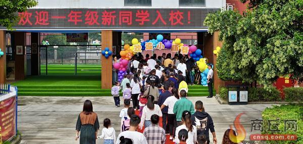 一年级新生在家长陪伴下入校。记者 魏文慧 摄