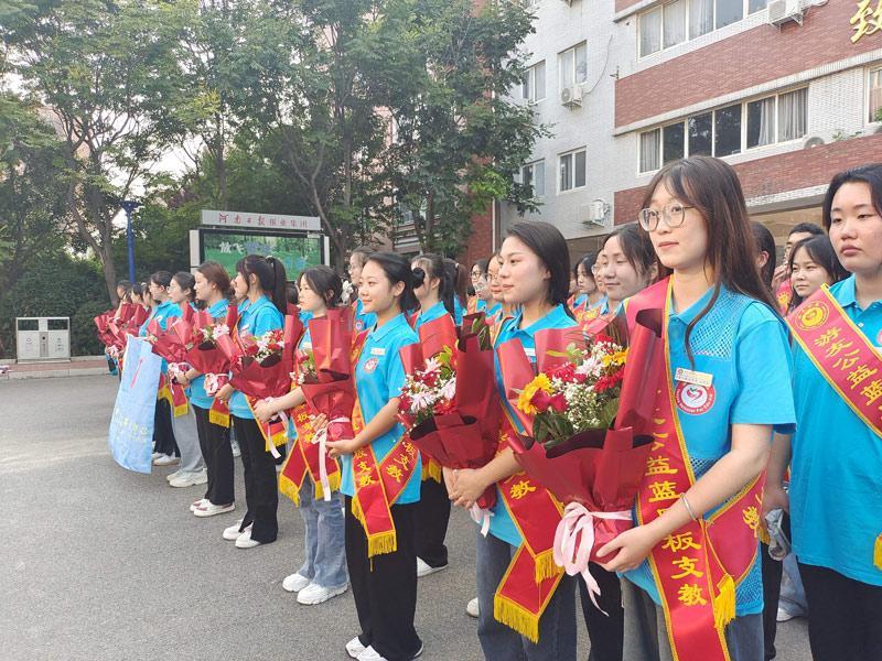 8月30日,由商丘职业技术学院、游友公益机构联合举办的我市2023年秋季“蓝黑板”公益支教出发仪式在商丘职业技术学院举行(如右图 鲁超 摄)。我市155名志愿者精神抖擞、充满激情地奔赴甘肃省东乡族自治县、江西省井冈山市、江西省永修县、海南省临高县、河南省鲁山县及河南省商丘市睢阳区、示范区的乡村学校开展为期一学期的支教活动。