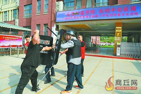 9月5日,梁园区前进小学组织安保人员开展“反恐防暴演练 共创平安校园”活动,通过演练强化师生安全教育,保护师生人身安全,提升安保人员面对突发恐怖事件的应急能力。演练活动前,学校制订了详细的反恐防暴演练应急预案,要求安保人员熟知演练流程,各尽其责,确保此次演练顺利开展。演练现场模拟事发场景。学生进校期间,一名“歹徒”假借家长之名试图进入校园,被保安拆穿后,“歹徒”掏出“凶器”冲向保安,保安立即拿起防暴工具奋力抵抗,学校值班人员迅速疏散学生。同时,另一名安保人员第一时间按下校园“一键报警按钮”,学校立即启动应急预案。反恐防暴应急救援队全体成员手持防护盾、棍棒、钢叉等,将“歹徒”围起来,合力制服,演练活动达到了预期效果。该校相关负责人表示,开展反恐防暴安全演练增强了学校安保人员的反恐防暴意识及处置突发情况的应变能力,提升了学校反恐防暴应急处理水平,学校将进一步加强安全管理工作,全力筑牢校园安全防线,为全体师生营造一个安全和谐的校园环境。