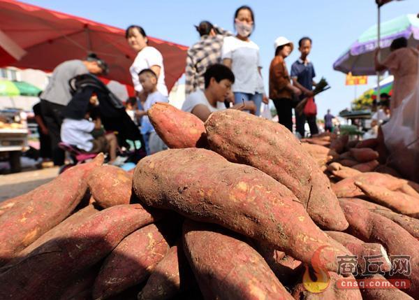 9月18日早晨,在文化路旁的一家农贸市场,市民正在选购蜜薯,每斤2元左右。蜜薯中含有氧化酶,食用过多的话会在肠道内产生大量的二氧化碳,从而会导致腹胀等,还会增加肠胃负担,易引起消化不良。记者 魏文慧 摄