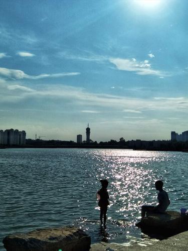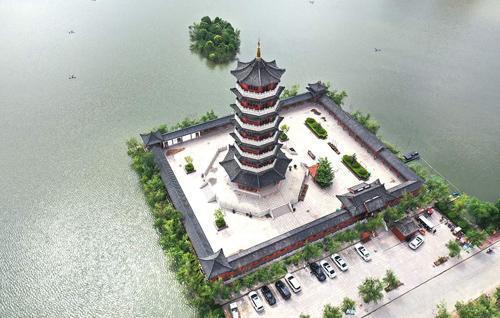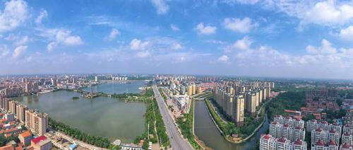 碧水蓝天,绿树成荫,柘城县城风景如画。